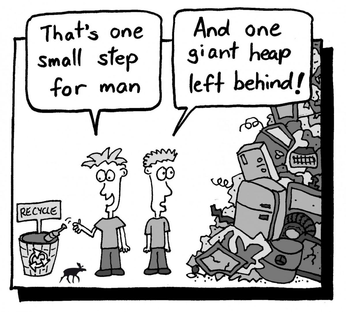We live in a disposable society where everything is produced and gets thrown away, from disposable diapers, disposable crockery, and disposable packaging. Lots of products are made for one-time-use, and only few products made to last. Profit-oriented companies market to create unnecessary needs, at the same time, they plan obsolescence while designing a product, which means the products got an artificially limited useful life.