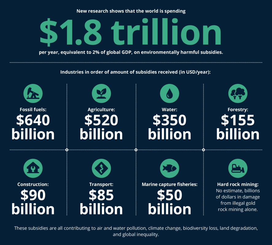 Environmentally “harmful” subsidies equivalent to 2% of global GDP are provided annually to key sectors of the economy, according to a study released Thursday by two business and NGO coalitions, The B Team and Business for Nature. They call on governments to redirect this aid by 2030.
